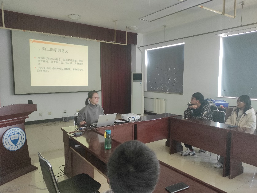 张老师首先从劳动教育、感恩教育、团队协作、个人能力提升等方面,讲解了公司勤工助学岗位设置的初衷和意义。随后结合公司勤工助学典型案例,给同学们详细讲解了勤工助学的相关流程,包括如何寻找岗位、获得岗位,如何操作勤工助学网站等勤工助学系列流程,以及勤工助学的管理、考核制度,让员工对公司的勤工助学工作有了清晰的了解,同时,结合员工工作实际,给予同学们提升个人综合能力的建议。最后,张老师要求生活委员们认真领悟本次培训内容,在各班级召开一次勤工助学主题班会。