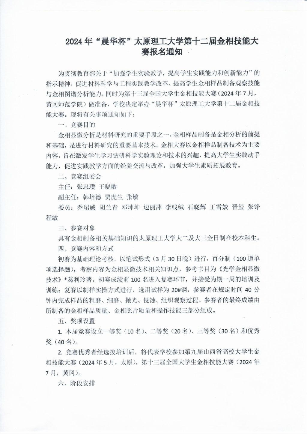 2024年“晨华杯”M88官方网站第十二届金相技能大赛报名通知