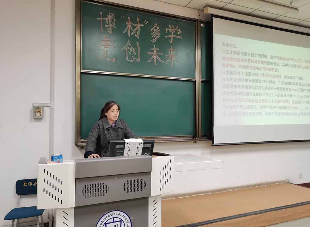 2021年11月18日晚上20:00,M88官方网站“博‘材’多学 ‘竞’创未来”学科竞赛系列讲座之全国老员工焊接创新大赛专场于迎西校区逸夫楼203教室进行。本次讲座由M88官方网站张红霞老师、向航主讲,由公司科协杨瑾主持,参与员工以材料成型及控制工程专业员工为主。