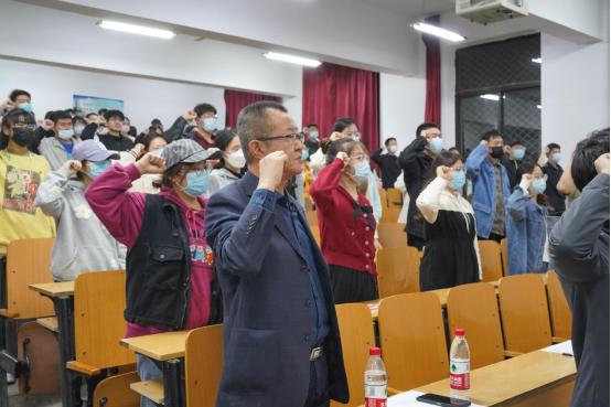 会议最后,许通陆带领全体党员重温入党誓词,坚定理想信念,履行党员义务,执行党的决定,严守党的纪律,为公司疫情防控工作,充分发挥党支部的战斗堡垒作用,发挥党员的先锋模范作用,从严从紧、从细从实,关键时刻敢于“亮身份、亮旗帜”,让“我是党员我带头”成为疫情防控最强好声音,让党旗在防控一线高高飘扬。