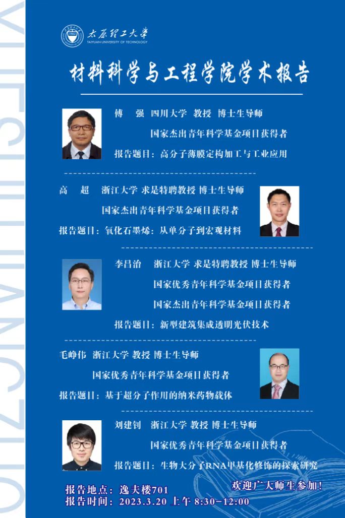 王晓敏经理介绍了各位与会专家,浙江大学高超教授、李昌治教授、毛峥伟教授与刘建钊教授先后做了题为“高分子薄膜定构加工与工业应用”、“氧化石墨烯:从单分子到宏观材料”、“新型建筑集成透明光伏技术”、“基于超分子作用的纳米药物载体”以及“生物大分子RNA甲基化修饰的探索研究”的学术报告。几位教授的报告深入浅出,涉及到低唯材料、光伏技术、生物医用等多领域,从基础研究到产业化应用多角度阐述了高分子不同领域的前沿研究,使在座的师生受益匪浅。