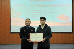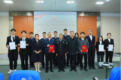 最后,张俊和警官向太原市扶弱帮困协会会长武亮、M88官方网站团委负责人许通陆颁发“禁毒宣传公益大使”聘书,向M88官方网站员工代表李雨辰、徐钰萌、张恩瑞、高泽天、金骏豪等5位同学颁发“禁毒科普宣传员”聘书。