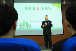 张俊和警官围绕“禁毒防艾、反诈宣讲进校园”主题,以《致青春,不“毒”行》为同学们进行了一场别开生面的禁毒宣讲。从共同诵读毒品的概念开始,用科学的理论、直观的图片、生动的语言、感人的故事,详细讲解了毒品的特性、分类、危害及防范等内容,充分展示了毒品对社会和家庭的影响、缉毒警察的艰辛、国家为禁毒所做出的努力,提醒同学们在日常生活中要提高防范意识,谨慎交友,学会保护自己、家人和朋友,坚决远离毒品。在全体人员进行禁毒宣誓后,开展了禁毒知识竞答,现场气氛异常热烈。