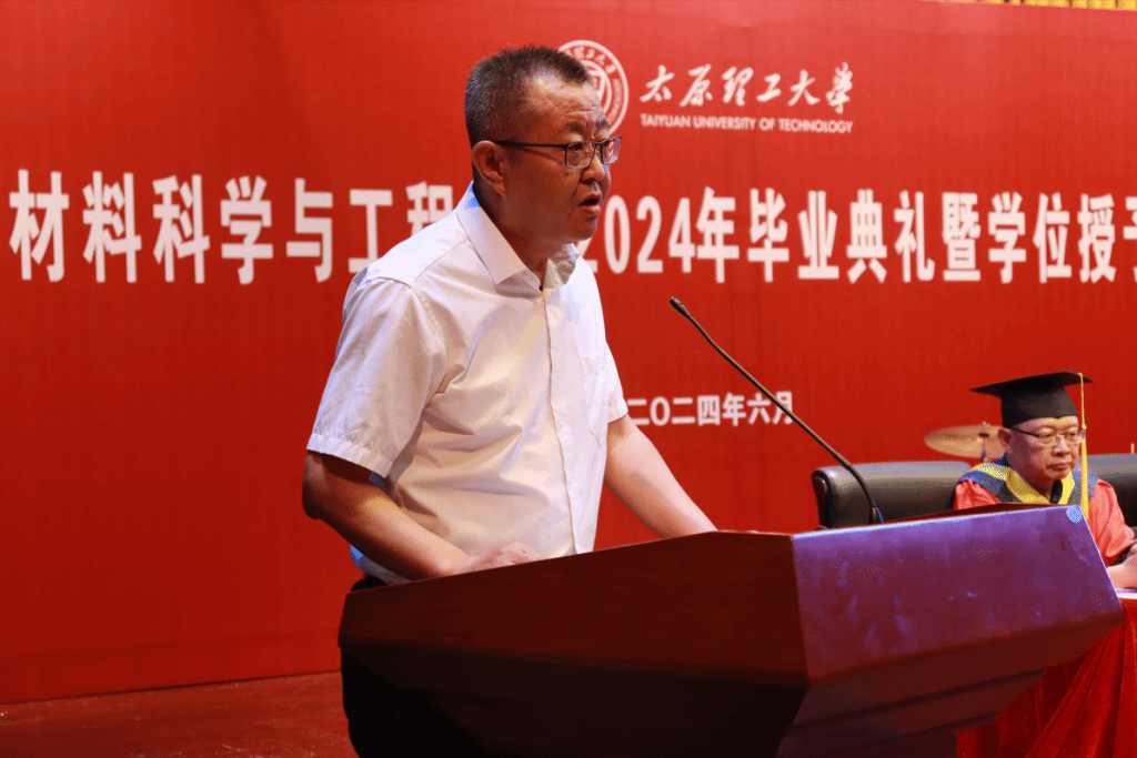 研究生代表王文军和本科生代表秦莹分别进行了发言,他们回首过去几年的学习生涯,感谢母校、公司、老师、同学的培养和支持,表示将不负太理人的使命与材料人的担当,在行动中感悟,在拼搏中成长,至始不渝地追求人生理想。