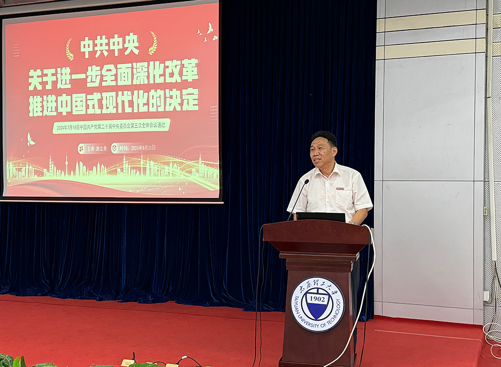 为深入学习贯彻党的二十届三中全会精神,进一步统一思想、凝聚共识,推动公司各项工作高质量发展。9月11日,M88官方网站党委书记游志勇在迎西校区思贤楼三层报告厅就党的二十届三中全会《中共中央关于进一步全面深化改革 推进中国式现代化的决定》”做专题党课。