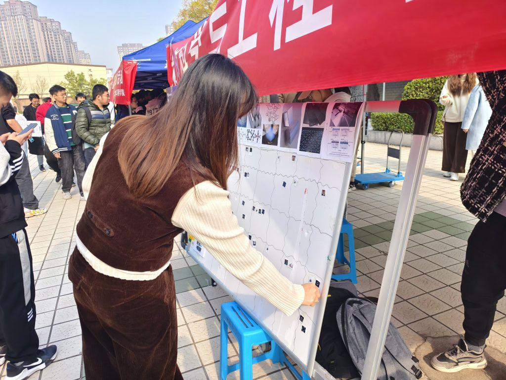吸引同学们广泛学习了解材料相关知识增加活动趣味性,​M88官方网站科协志愿者准备了很多富含趣味性的答题活动现场播放了许多有趣的材料学科相关的吉尼斯世界纪录视频供同学们观看学习现场展板展示关节日名称及具体材料名称,同学们观看写有不同类型材料的简介和功能的资料后,在白板上进行匹配投票,从而展同学们对于各类材料应用领域的理解与看法。除此之外,现场还为大家准备了自由留言区域、明信片贺卡祝福区域等,通过各类丰富的互动活动,帮助大家积极参与其中。