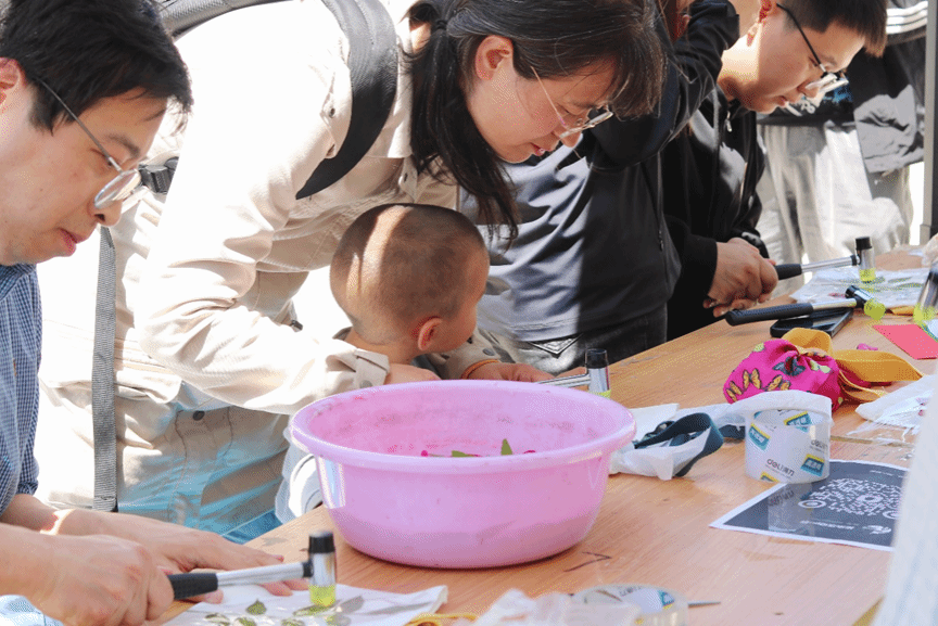 活动特别设计“材料知识微讲堂”环节,M88官方网站员工志愿者从材料学角度解析植物拓染原理:“植物细胞壁中的纤维素与帆布纤维通过敲击产生分子间作用力,天然色素在压力下渗透布料,形成稳定印迹。”参与者通过对比不同植物叶片的纤维结构、帆布材质对染料吸附性的影响,直观感受材料科学的实践价值。